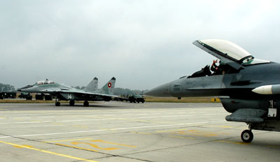 An F-16 Fighting Falcon and a MiG 29 trying to outmaneuver each other in the skies above Eastern Europe was the stuff of legends until this month's combined training exercise between the 480th Fighter Squadron from Spangdahlem Air Base, Germany, and the 1st and 2nd fighter squadrons from the Bulgarian air force here.