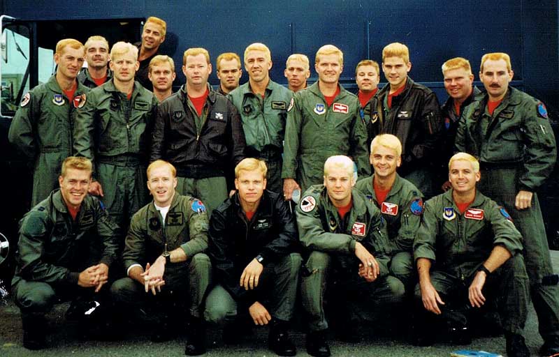 Second/Third Rows: Dan Craft, Capt. J.Q. "Gumby" Watton, 1Lt. Dan "Red" Tippett, Capt. Bill "AJ" Kavchack, Maj. Keith "K-squared" Kiger, 1Lt. Scott "Skibo" Bowen, Capt. Merrill "Sphincter" Fink, Capt. Garrett "Turbo" Thompson, Maj. Randy "RB/Habi" Bright, Capt. Jim "Manson/Vandy" Vanderzyl, Capt. Dave "Youtz" Youtsey, Capt. Dennis "Fish" Prokopowicz, Capt. Jon "Monster" Huss