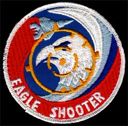 The hawk's red eye and tightly set beak indicate the blazing courage and determination with which the wearers of this emblem meet their appointed tasks.