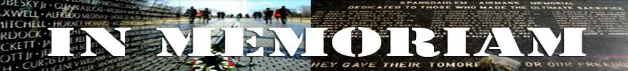 Click the links below to go to individual pages. Click on the "In Memoriam" image at the top of each page to return here. Information on each fallen Warhawk is culled from multiple internet sources, and is a work in progress. If you want to contribute to anyone's page, or have updated information, please contact the Warhawk webmaster at petez@me.com.